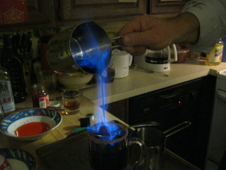 Around midnight, Dad performs an annual highlight of the party: flaming Mexican coffee.