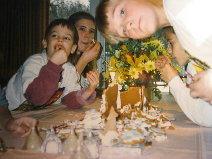 Mom made a gingerbread house (always with a gingerbread dog) which sat tantalizingly on the table until after Christmas dinner, the ultimate exercise in self-denial.
