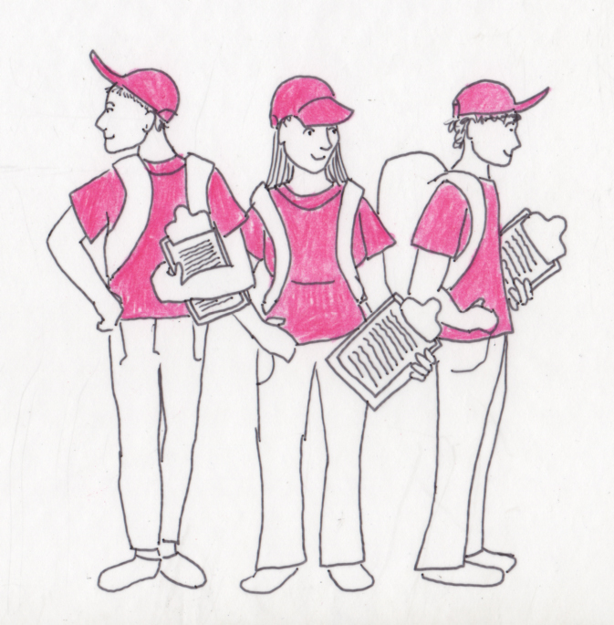 I spot them from a block away, in their matching t-shirts with their backpacks, folders, pamphlets and clipboards, assailing the passing crowds with all-to-cheery greetings.