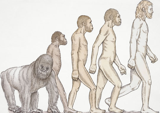 Look for a few moments at one of those handy textbook pictures, which show a hairy, crouching ape becoming a striding, pale, naked huntsman (usually with a luxuriant Brad Pitt-worthy ‘do) in about five easy steps, and there’s so much wrong with it you don’t even know where to start.