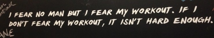 “I will pick a fight with every challenge that comes my way. I will battle until I achieve success and then look for my next opponent,” the CrossFit wall reads. I wonder what would happen if all the country’s CrossFit acolytes devoted the same fervor to, say, civil rights or childhood hunger?